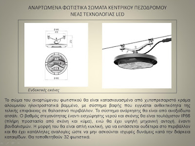 - Τα νέα φωτιστικά σώματα θα είναι νέας τεχνολογίας LED με χαμηλή ενεργειακή κατανάλωση και περιβαλλοντικό αποτύπωμα, καθώς και αυξημένη φωτιστική απόδοση, σε μεγάλη διάρκεια χρόνου χρήσης.