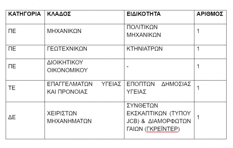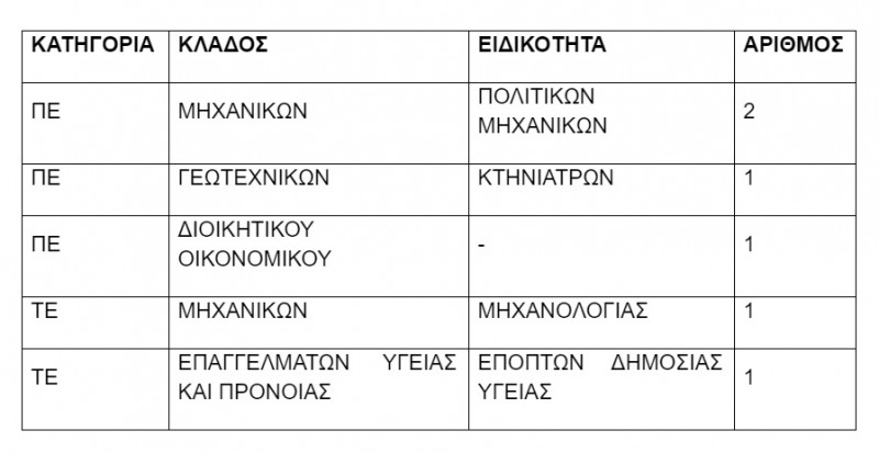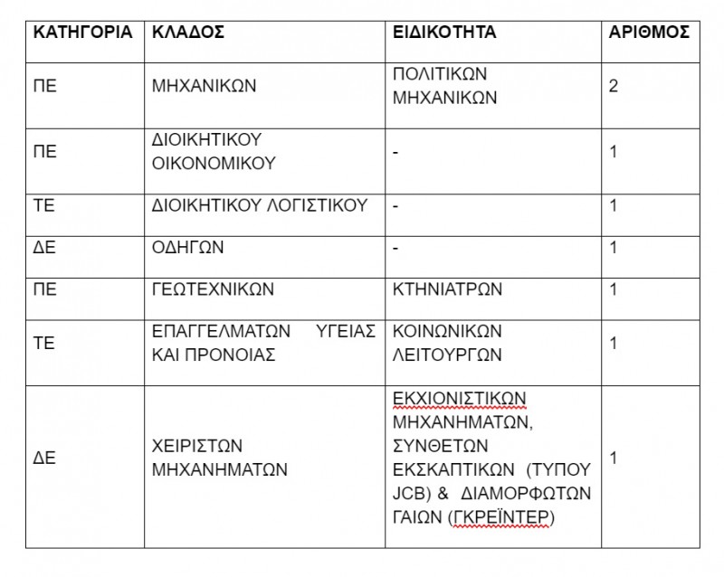 Στο πλαίσιο του ετήσιου προγράμματος προσλήψεων τακτικού προσωπικού για το έτος 2021, προβλέπεται ανά περιφερειακή ενότητα, να καλυφθούν οι αντίστοιχες θέσεις ως εξής: