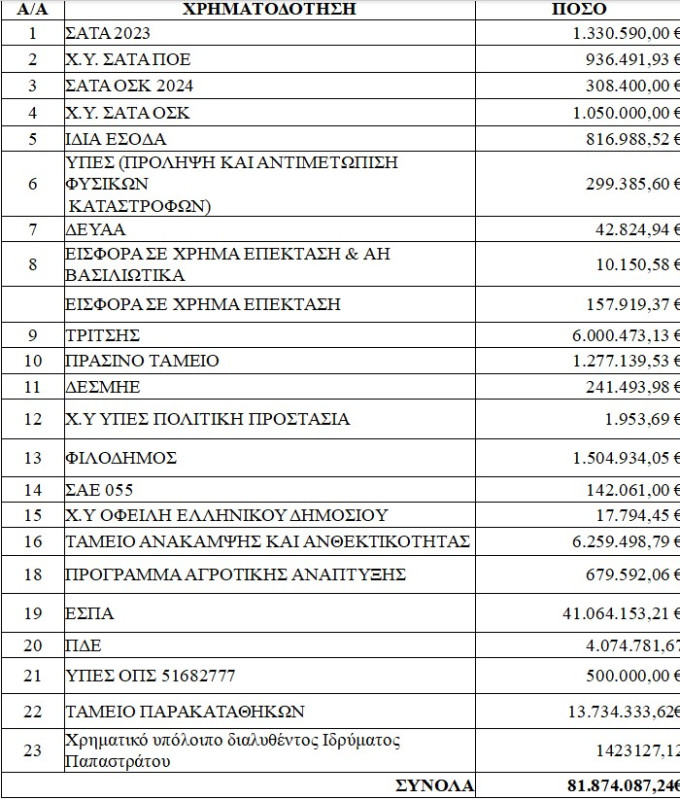 Οι νέες εντάξεις πράξεων αγγίζουν τα 15.808.733,62 €, τα νέα έργα με χρηματοδότηση ΣΑΤΑ και ίδια έσοδα 1.349.849,29 και τα συνεχιζόμενα έργα ανέρχονται στο ποσό των 80.505.037,95 €.
