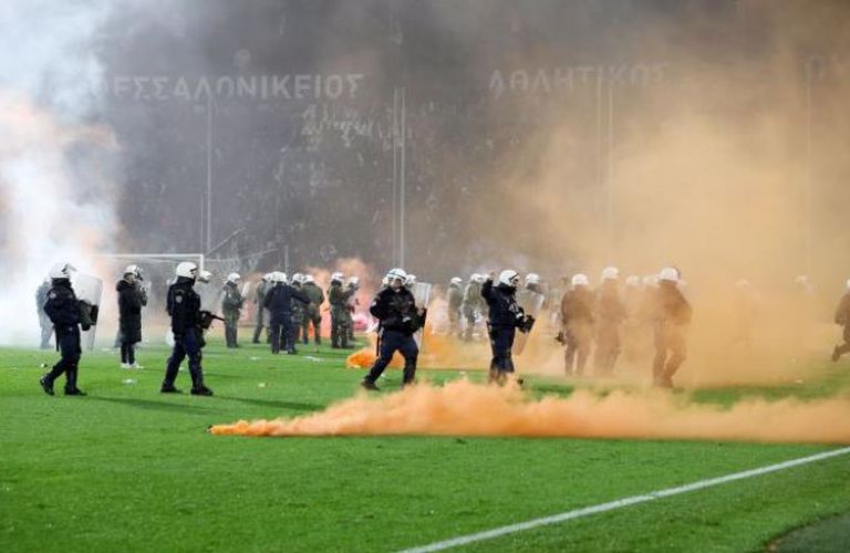 Τα επεισόδια ξεκίνησαν στο 92ο λεπτό του ντέρμπι, όταν οπαδοί εισέβαλαν στον αγωνιστικό χώρο, πετώντας αντικείμενα, φωτοβολίδες και πυρσούς, ενώ επιτέθηκαν κατά αστυνομικών.