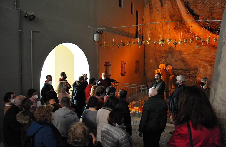 Μετά το υπέροχο μεσημεριανό γεύμα, περιηγηθήκαμε στην Ιερά Μονή Αγίας Λαύρας από όπου ο Παλαιών Πατρών Γερμανός κήρυξε την έναρξη της Επανάστασης του 1821 και είδαμε το αυθεντικό λάβαρο που ύψωσε. Στη συνέχεια, προσκυνήσαμε στην Ιερά Μονή του Μεγάλου