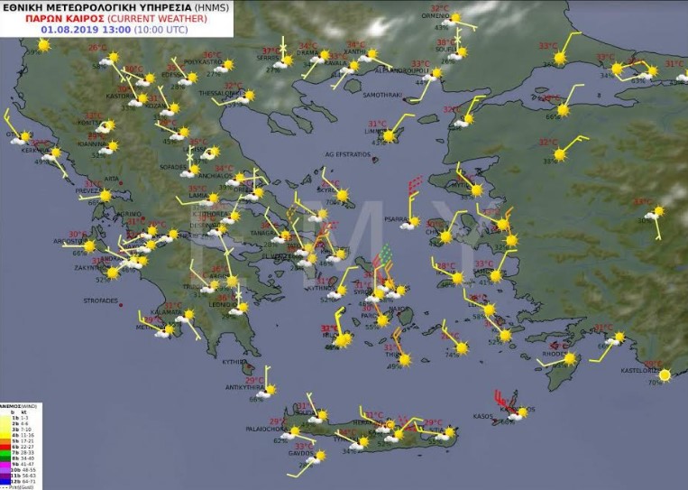 Το Έκτακτο Δελτίο Επιδείνωσης Καιρού της ΕΜΥ/ΕΜΚ (Α.Α 14/2019), που ισχύει από σήμερα Πέμπτη 1-08- 2019 μέχρι και την Κυριακή 4-08-2019 και δημοσιοποιήθηκε από τη Γενική Γραμματεία Πολιτικής Προστασία προβλέπει υψηλές θερμοκρασίες σε ολόκληρη τη χώρα.