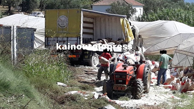 Ο οδηγός του οχήματος το οποίο είναι φορτωμένο με άλευρα έχασε τον έλεγχο του οχήματος για να αποφύγει την σύγκρουση με διερχόμενο όχημα από το αντίθετο ρεύμα που του έκλεισε το δρόμο, όπως ανέφερε στο “Κ”