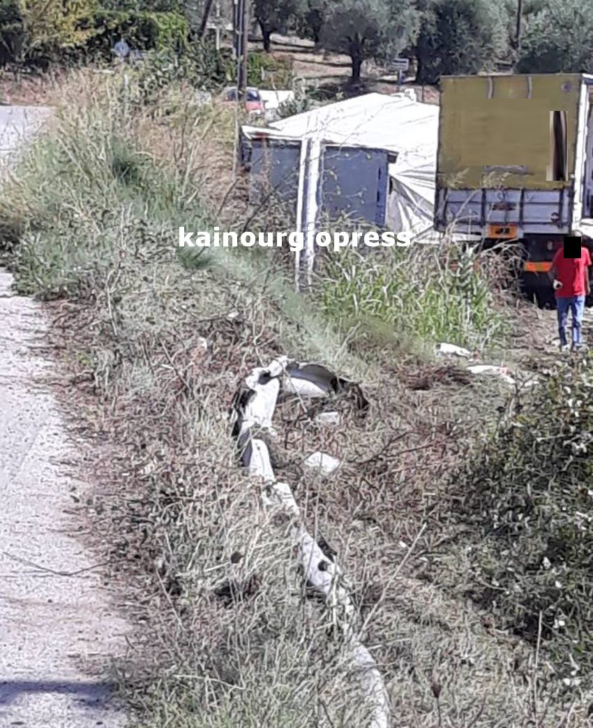 Εκτροπή φορτηγού στην Ε.Ο. Παναιτωλίου-Θέρμου στην θέση Αμπάρια (Φωτό)