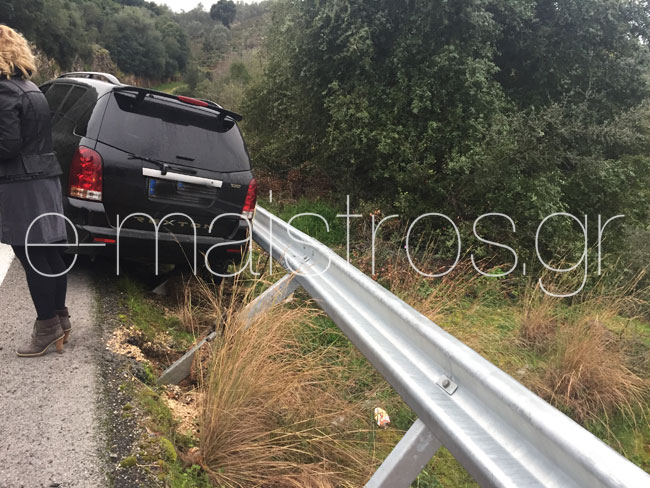Αυτοκίνητο ΙΧΕ με κατεύθυνση προς Αμφιλοχία εξετράπη της πορεία στο γνωστό σημείο λόγω ολισθηρότητας, πέρασε στο αντίθετο ρεύμα και σταμάτησε στις προστατευτικές μπάρες. Στο όχημα που επέβαινε ο αντιδήμαρχος Κώστας Καλαντζής και η σύζυγός τουδεν υπήρξε τραυματισμός. Για καλή τους τύχη οι προστατευτικές μπάρες στο σημείο είχαν τοποθετηθεί πρόσφατα και συγκράτησαν το βαρύ όχημα, γιατί σε διαφορετική περίπτωση θα κατέληγε στη θάλασσα.