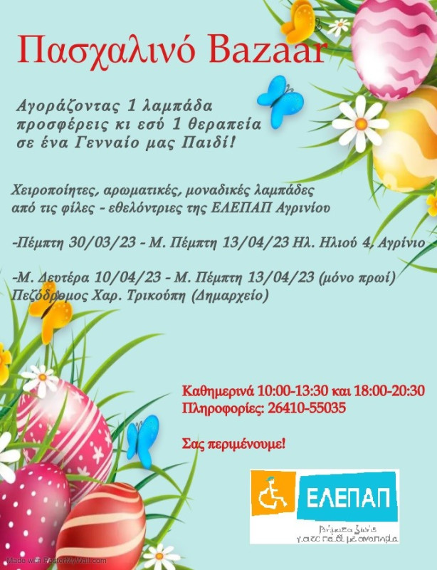 Η Τοπική Διοικούσα Επιτροπή της ΕΛ.Ε.Π.Α.Π. Αγρινίου κάνει γνωστό πως φίλες και εθελόντριες ετοίμασαν και φέτος με φαντασία, αγάπη και μεράκι πασχαλινές λαμπάδες για το καθιερωμένο Bazaar.