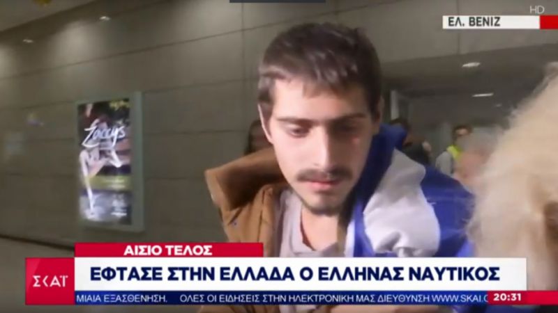 Τυλιγμένος με την ελληνική σημαία έφτασε λίγο μετά τις 8 το βράδυ στην Ελλάδα ο 20χρονος Έλληνας ναυτικός που είχε απαχθεί από πειρατές αρχές Δεκεμβρίου ανοιχτά του Τόνγκο.