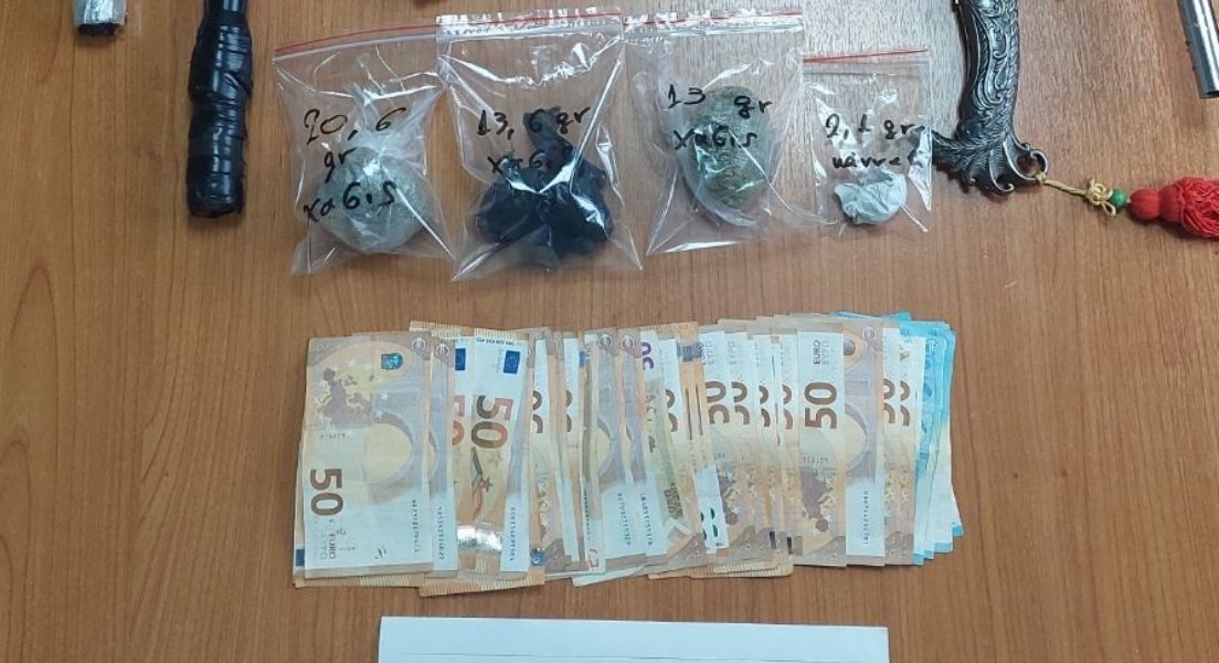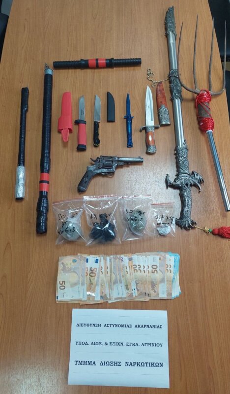 Οι Αστυνομικοί κατέσχεσαν -1- περίστροφο, -1- ξίφος, μαχαίρια, -50- περίπου γραμμάρια κάνναβης και -1.760- ευρώ