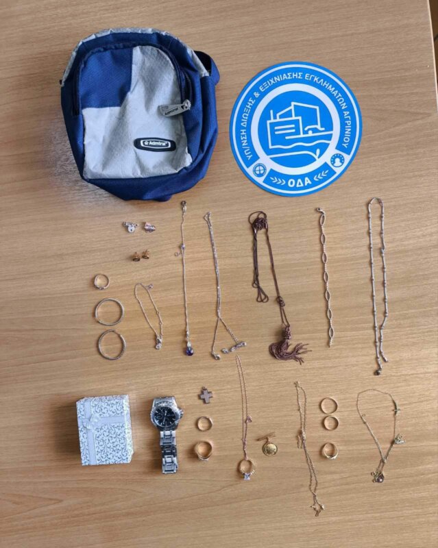 Από την προανάκριση που ενήργησαν οι Αστυνομικοί της Υποδιεύθυνσης Δίωξης και Εξιχνίασης Εγκλημάτων Αγρινίου προέκυψε ότι ο συλληφθείς διέπραξε από τις 04-09-2025 έως τις 06-09 2025 ακόμα πέντε περιπτώσεις κλοπών (τρεις τετελεσμένες – δυο απόπειρες) σε οικίες στο Αγρίνιο, κατά τις οποίες αφαίρεσε κοσμήματα, συνολικής αξίας -1.350- ευρώ, μέρος των οποίων πώλησε σε ενεχυροδανειστήριο.