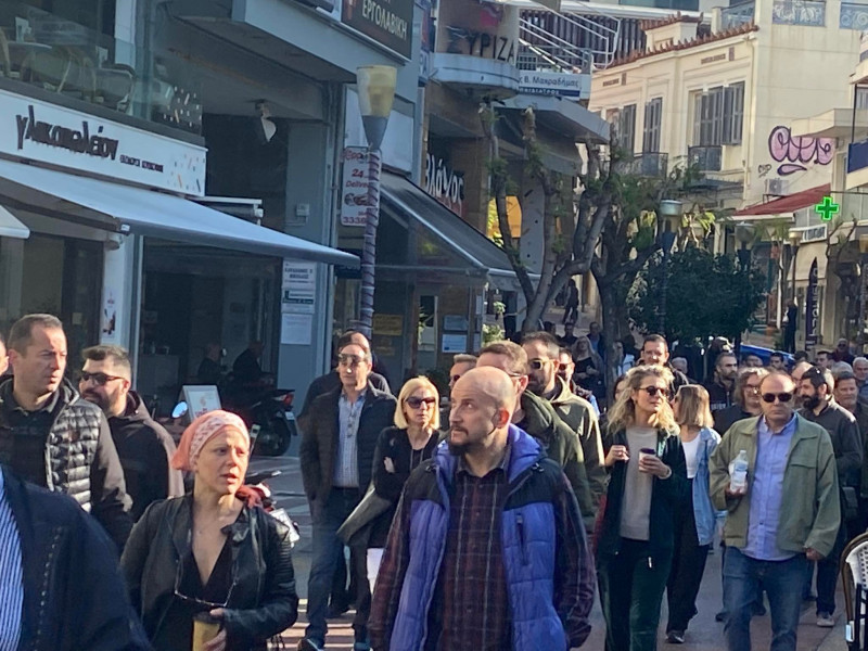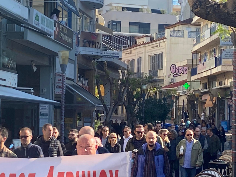 Συνάδελφοι σας καλούμε να περπατήσουμε μαζί σε κάποιους κεντρικούς δρόμους της πόλης μας, μπροστά από τα δικά μας κλειστά μαγαζιά και να κατευθυνθούμε προς την κεντρική πλατεία όπου η Κοινωνία σήμερα απεργεί».