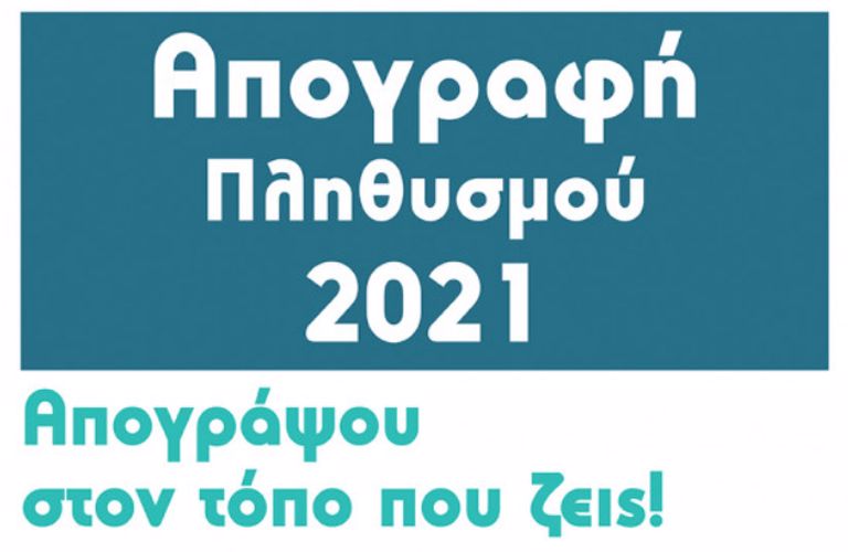 Η Ελληνική Στατιστική Αρχή (ΕΛ,ΣΤΑΤ,), όπως κάθε δέκα χρόνια, θα διενεργήσει, την περίοδο Νοεμβρίου-Δεκεμβρίου 2021, την Απογραφή Πληθυσμού-Κατοικιών, με σκοπό τη συγκέντρωση στοιχείων για τα δημογραφικά, οικονομικά και κοινωνικά χαρακτηριστικά του πληθυσμού της Ελλάδας, καθώς και για τη σύνθεση των νοικοκυριών και τις συνθήκες στέγασής τους.