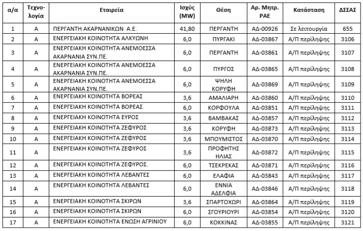 Στον πίνακα που ακολουθεί, αποτυπώνονται τα έργα που έλαβαν μόλις Όρους Σύνδεσης, με τα οποία ολοκληρώνεται το γραφειοκρατικό σκέλος, επιτρέποντάς μας πλέον να επισπεύσουμε τις διαδικασίες, ώστε περί τα τέλη του καλοκαιριού να ξεκινήσει η κατασκευή.