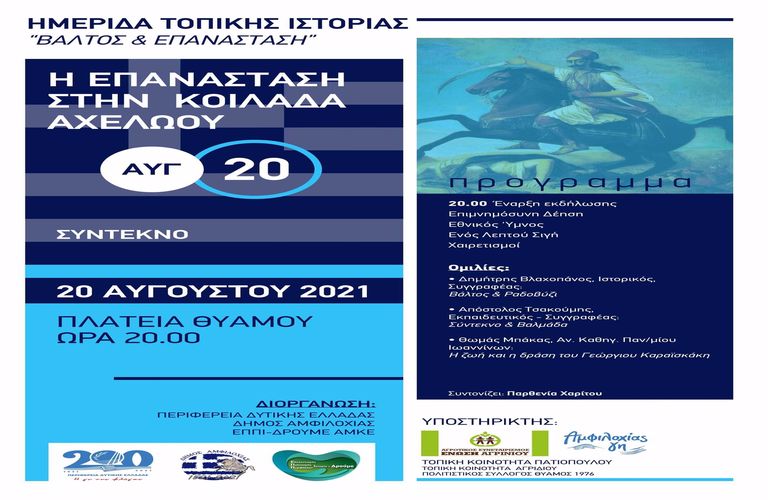 Με δύο ημερίδες στο Θύαμο και το παλιό Χαλκιόπουλο συνεχίζεται το πρόγραμμα εκδηλώσεων που, με την υποστήριξη της Ένωσης Αγρινίου και των προϊόντων Αμφιλοχίας Γη, συνδιοργανώνει ο Δήμος Αμφιλοχίας με την Περιφέρεια Δυτικής Ελλάδας και την ΑΜΚΕ ΕΠΠΙ-ΔΡΟΥΜΕ για τον εορτασμό των 200 χρόνων από την Επανάσταση του 1821.