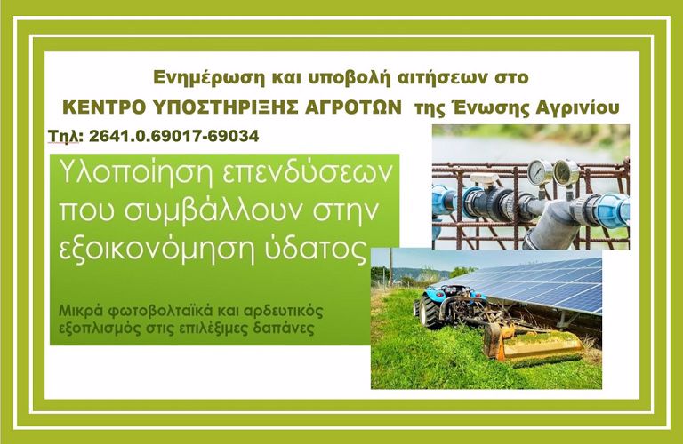 Ένωση Αγρινίου: Δράση 4.1.2 με χρηματοδότηση έως 200.000 ευρώ