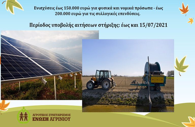 Σε ποιους απευθύνεται: Φυσικά και νομικά πρόσωπα, καθώς και συλλογικά σχήματα αγροτών.