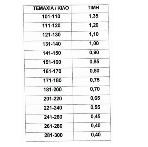 Όσοι παραγωγοί είναι μέλη στις Ομάδες Παραγωγών Επιτραπέζιων Ελιών του Α.Σ. «Ένωση Αγρινίου» θα έχουν συν (+)0,05 ευρώ στις παραπάνω τιμές.