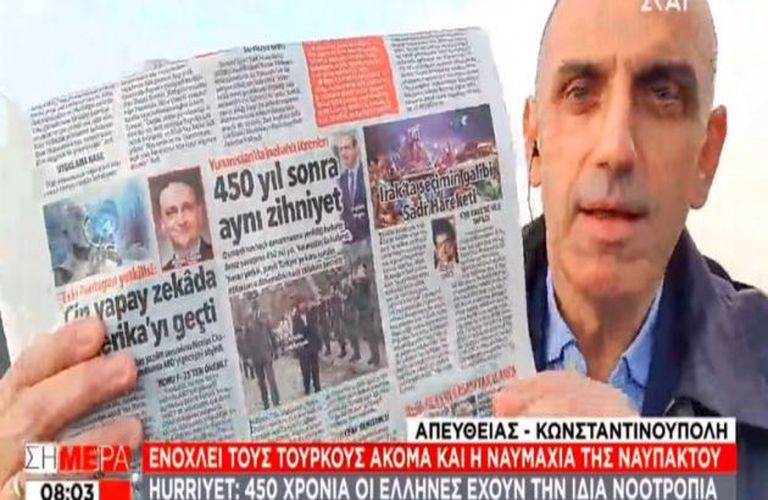 Ενοχλημένος ακόμα και με τις εορταστικές εκδηλώσεις για τη Ναυμαχία της Ναυπάκτου την Κυριακή εμφανίζεται ο τουρκικός Τύπος!