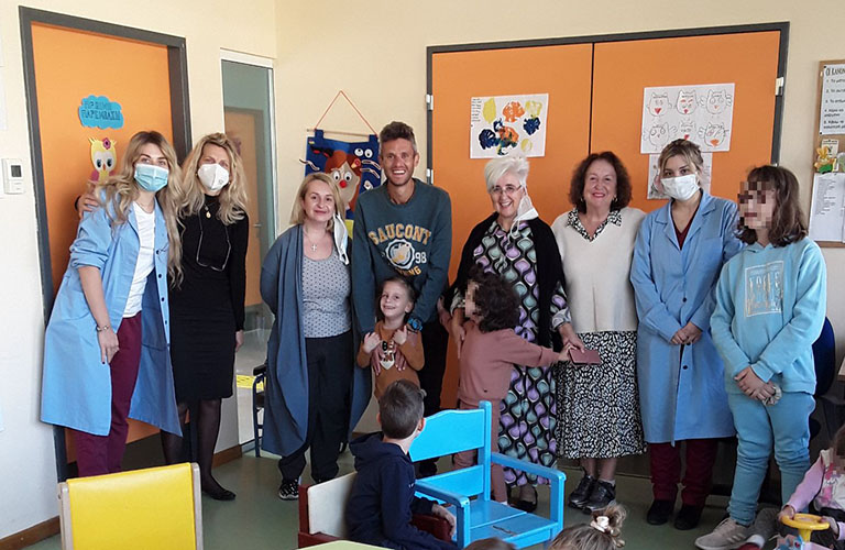 Ο πρεσβευτής του Αγρινίου στον Αθλητισμό αφού ξεναγήθηκε σε όλους τους χώρους, γνώρισε τα παιδιά της Ειδικής Προσχολικής Αγωγής τα οποία τον τίμησαν ιδιαιτέρως προσφέροντάς του δώρα που φιλοτέχνησαν τα παιδιά με τους ειδικούς παιδαγωγούς.