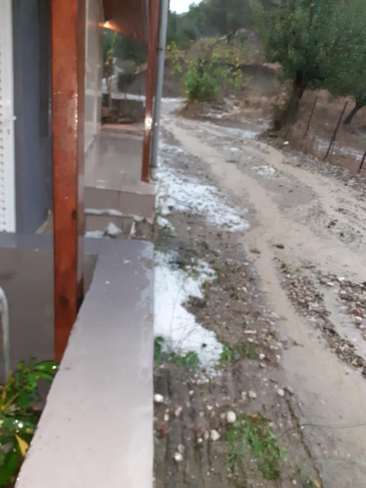 Σφοδρή κακοκαιρία επικρατεί στην περιοχή μας. Ο δυνατός αέρας έφερε και σφοδρή χαλαζόπτωση και προκάλεσε μεγάλες καταστροφές σε ελιές και άλλες καλλιέργειες.