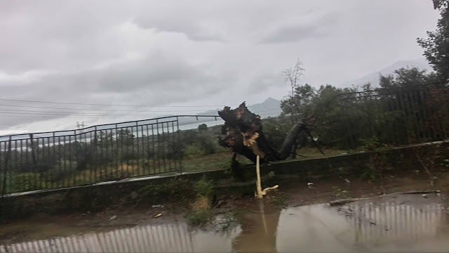 Σφοδρή κακοκαιρία επικρατεί στην περιοχή μας. Ο δυνατός αέρας έφερε και σφοδρή χαλαζόπτωση και προκάλεσε μεγάλες καταστροφές σε ελιές και άλλες καλλιέργειες.