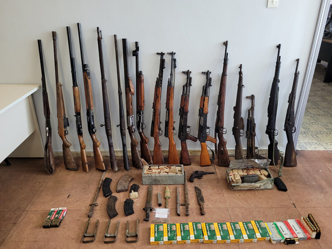 Συνολικά 17 όπλα-από τα οποία τα 5 kalashnikov-, 2 χειροβομβίδες και 47 δενδρύλλια κάνναβης ανάμεσα στα κατασχεθέντα.