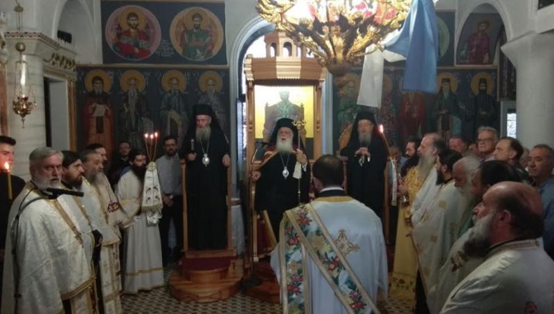 Στον Εσπερινό χοροστάτησε ο Μητροπολίτης Θερμοπυλών κ. Ιωάννης και συγχοροστάτησαν ο Μητροπολίτης Ναυπάκτου και Αγίου Βλασίου κ. Ιερόθεος και ο Ποιμενάρχης μας, Μητροπολίτης Αιτωλίας και Ακαρνανίας κ. Κοσμάς.