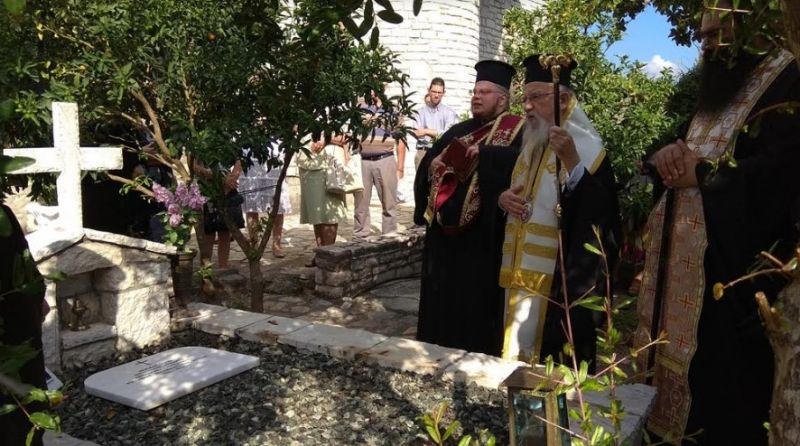 Μετά την απόλυση της Θείας Λειτουργίας ο Σεβασμιώτατος τέλεσε τρισάγιο στον τάφο του μακαριστού κτίτορος του Ιερού Ησυχαστηρίου αρχιμ. Θεοκλήτου Ντζάθα, που βρίσκεται πίσω από το ιερό Βήμα.