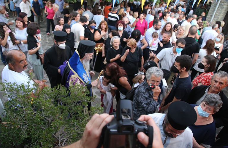 Επίσης, ο Σεβασμιώτατος στο κήρυγμά του αναφέρθηκε στο μεγάλο πρόσωπο της Υπεραγίας Θεοτόκου που είναι, κατά την έκφραση του αγίου Γρηγορίου του Παλαμά, το «μεθόριο μεταξύ ακτίστου και κτιστής φύσεως». Για αυτό και η εορτή αυτή είναι θεολογική εορτή.