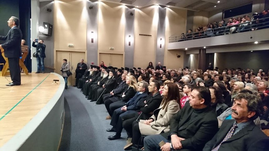 Στην κατάμεστη από εκπαιδευτικούς, γονείς και φιλοαγιορείτες, αίθουσα του Παπαστρατείου Μεγάρου της Γυμναστικής Εταιρείας Αγρινίου πραγματοποιήθηκε, την Δευτέρα 30 Ιανουαρίου 2017 το απόγευμα, η εορταστική εκδήλωση προς τιμήν των Αγίων Τριών Ιεραρχών προστατών των Ελληνικών Γραμμάτων, που συνδιοργάνωσαν η Ιερά Μητρόπολις Αιτωλίας και Ακαρνανίας και το τοπικό παράρτημα Νομού Αιτωλοακαρνανίας της Πανελληνίου Ενώσεως Θεολόγων (Π.Ε.Θ.).
