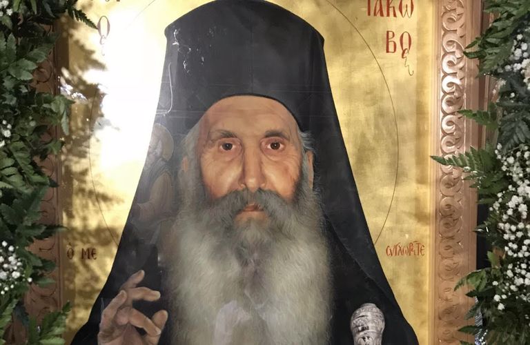 Τῶν ὁσίων Πατέρων τὰ κατορθώματα, ἐν ἐσχάτοις τοῖς χρόνοις ζηλώσας ἅγιε, ἀνεδείχθης μιμητὴς τούτων Ἰάκωβε, ἐν τῇ μάνδρᾳ τοῦ Δαυΐδ, τοῦ προστάτου σου σεμνέ, ποιμάνας ταύτην ἐνθέως, διὸ σὺν τούτῳ μὴ παύσῃ, ὑπὲρ ἡμῶν ἀεὶ δεόμενος.