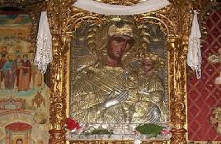 Της Ελλάδος απάσης συ προΐστασαι πρόμαχος και τερατουργός εξαισίων τη εκ Προύσσης εικόνι Σου, Πανάχραντε Παρθένε Μαριάμ, και γαρ φωτίζεις εν τάχει τους τυφλούς δεινούς τε απελαύνεις δαίμονας και παραλύτους δε συσφίγγεις αγαθή. Κρημνών τε σώζεις και πάσης βλάβης τους σοι προστρέχοντας. Δόξα τω σω ασπόρω τοκετώ, δοξα τω σε θαυμαστώσαντι, δόξα το ενεργούντι δια σου τοιαύτα θαύματα.