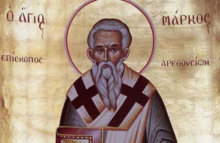 Ο Άγιος Μάρκος ήταν επίσκοπος Αρεθουσίων (Η Αρέθουσα είναι οικισμός στα ανατολικά του Νομού Θεσσαλονίκης) και ήκμασε στα χρόνια του Μέγα Κωνσταντίνου, του βασιλέως Κωνσταντίου (337-361 μ.Χ.) και του Ιουλιανού του Παραβάτου (361 – 363 μ.Χ.).