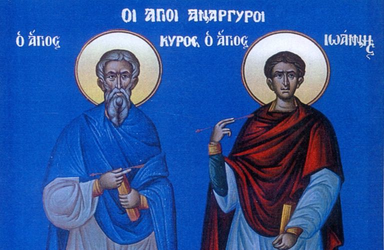 Οι Άγιοι Μάρτυρες Κύρος και Ιωάννης άθλησαν κατά την εποχή του αυτοκράτορα Διοκλητιανού (284 – 305 μ.Χ.). Ο Άγιος Κύρος καταγόταν από την Αλεξάνδρεια, ενώ ο Άγιος Ιωάννης καταγόταν από την Έδεσσα της Μεσοποταμίας.