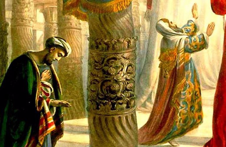 «Εἶπε δὲ καὶ πρός τινας τοὺς πεποιθότας ἐφ᾿ ἑαυτοῖς ὅτι εἰσὶ δίκαιοι, καὶ ἐξουθενοῦντας τοὺς λοιπούς, τὴν παραβολὴν ταύτην· ἄνθρωποι δύο ἀνέβησαν εἰς τὸ ἱερὸν προσεύξασθαι, ὁ εἷς Φαρισαῖος καὶ ὁ ἕτερος τελώνης. ὁ Φαρισαῖος σταθεὶς πρὸς ἑαυτὸν ταῦτα προσηύχετο· ὁ Θεός, εὐχαριστῶ σοι ὅτι οὐκ εἰμὶ ὥσπερ οἱ λοιποὶ τῶν ἀνθρώπων, ἅρπαγες, ἄδικοι, μοιχοί, ἢ καὶ ὡς οὗτος ὁ τελώνης· νηστεύω δὶς τοῦ σαββάτου, ἀποδεκατῶ πάντα ὅσα κτῶμαι. Καὶ ὁ τελώνης μακρόθεν ἑστὼς οὐκ ἤθελεν οὐδὲ τοὺς ὀφθαλμοὺς εἰς τὸν οὐρανὸν ἐπᾶραι, ἀλλ᾿ ἔτυπτεν εἰς τὸ στῆθος αὐτοῦ λέγων· ὁ Θεός, ἱλάσθητί μοι τῷ ἁμαρτωλῷ. Λέγω ὑμῖν, κατέβη οὗτος δεδικαιωμένος εἰς τὸν οἶκον αὐτοῦ ἢ γὰρ ἐκεῖνος· ὅτι πᾶς ὁ ὑψῶν ἑαυτὸν ταπεινωθήσεται, ὁ δὲ ταπεινῶν ἑαυτὸν ὑψωθήσεται». (Λουκ.18,10-14).
