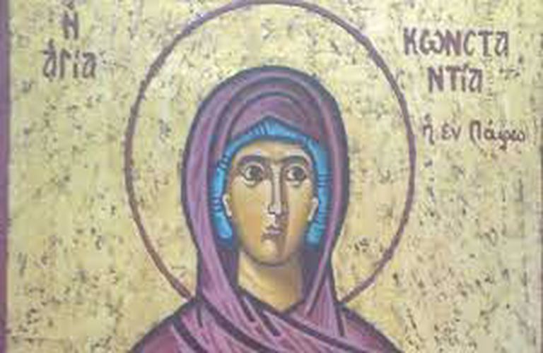 Η Αγία Κωνσταντία ήταν από την Πάφο και όπως γράφει ο Άγιος Ιερώνυμος στο βιβλίο του «Εις το περί εκκλησιαστικών συγγαφέων βιβλίον» ήταν μαθήτρια του Αγίου Ιλαρίωνα του Μέγα (βλέπε 21 Οκτωβρίου) ο οποίος ασκήτεψε στο χωριό Επισκοπή της Πάφου.