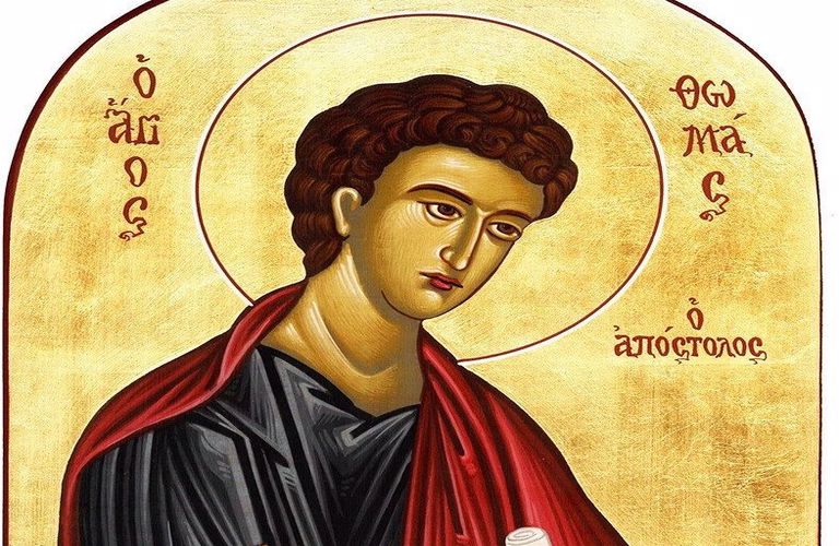 Ο Άγιος Θωμάς ο Απόστολος ήταν μεταξύ των δώδεκα μαθητών του Κυρίου και ανήκε σε οικογένεια αλιέων. Ο Θωμάς, λοιπόν, μετά την Ανάσταση του Χριστού και την πρώτη εμφάνισή Του στους μαθητές, δυσπιστούσε σ’ αυτά που του έλεγαν αυτοί. Αλλά ο Κύριος επανεμφανίστηκε στους μαθητές μέσα στο υπερώον, όταν μεταξύ τους βρισκόταν και ο Θωμάς. Τότε ο Κύριος προέτρεψε το Θωμά να ψηλαφήσει τις πληγές από τα καρφιά που Τον σταύρωσαν, και να μη γίνεται άπιστος, αλλά πιστός. Εκθαμβωμένος ο Θωμάς, προσκύνησε και ανεβόησε: «Ο Κύριός μου και ο Θεός μου». Η δε απάντηση του Κυρίου ήταν τέτοια, που θα διδάσκει όλους όσους θέλουν να δυσπιστούν στην αλήθεια του Ευαγγελίου. Είπε, λοιπόν, ο Κύριος: «ότι εώρακάς με, πεπίστευκας, μακάριοι οι μη ιδόντες και πιστεύσαντες». Δηλαδή, λέει ο Κύριος στο Θωμά, πίστεψες επειδή με είδες. Μακαριότεροι και περισσότερο καλότυχοι είναι εκείνοι, που αν και δεν με είδαν, πίστεψαν.