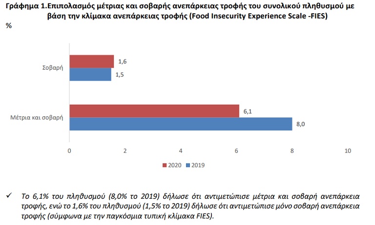 - Το 0,7% των νοικοκυριών έχει χαμηλή επάρκεια τροφής