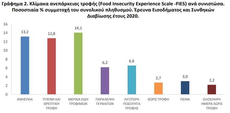 - Το 13,2% του πληθυσμού ανησύχησε ότι δεν θα είχε αρκετή τροφή για να καλύψει τις ανάγκες του