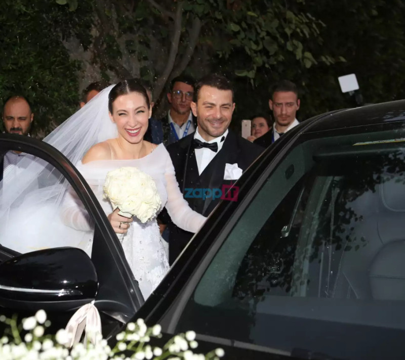 Εκείνη έφτασε, πιο λαμπερή από ποτέ, στα λευκά για να οδηγηθούν με μιας στο εσωτερικό της εκκλησίας.