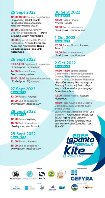 Το Επίσημο Πρόγραμμα του Lepanto Formula Kite Europeans 2022