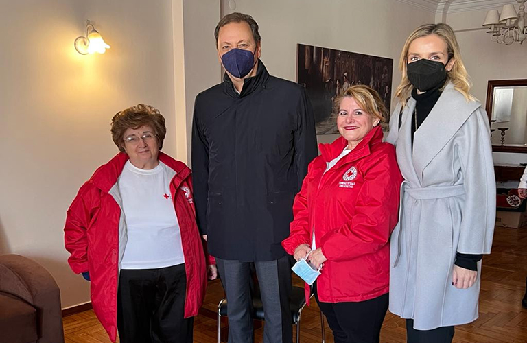 Στη συνέχεια επισκέφθηκε τα γραφεία του Ερυθρού Σταυρού στο Αγρίνιο και εξέφρασε τις ευχαριστίες του στους εθελοντές και στις εθελόντριες για το έργο που επιτελούν για να στηρίξουν όσους έχουν ανάγκη και ειδικά τους αδυνάμους, ιδιαίτερα σε αυτές τις δύσκολες ώρες που βιώνει η χώρα μας με την πανδημία. «Παρακολουθώντας το έργο που κάνετε και εδώ και πανελλαδικά, θέλω να ευχαριστήσω όλες τις εθελόντριες και όλους εσάς που τις υποστηρίζετε. Γιατί η συμβολή τους και στην προσπάθεια εμβολιασμού και στην υποστήριξη των συνανθρώπων μας που έχουν ανάγκη αυτούς τους μήνες, είναι σημαντική».