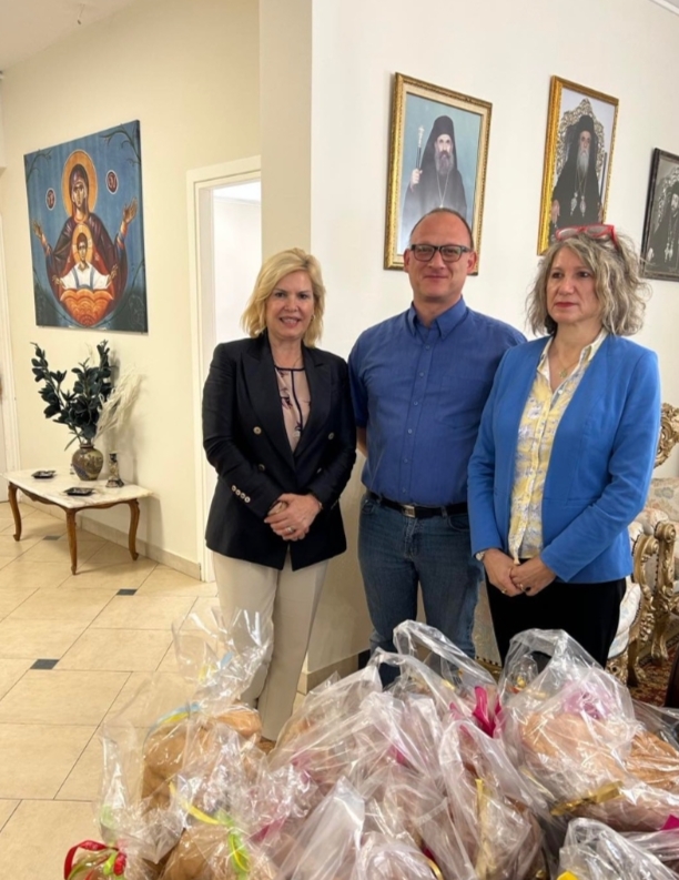 - Μαζί με τους συνεργάτες της, μοίρασαν πασχαλινά δώρα στους φιλοξενούμενους και αντάλλαξαν ευχές για τις γιορτές.