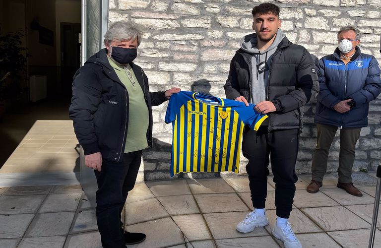 Επίσκεψη στο Γυμνάσιο Θέρμου πραγματοποίησαν σήμερα στελέχη της Π.Α.Ε. Παναιτωλικός μαζί με τον Διεθνή Ποδοσφαιριστή της ομάδας Γιώργο Λιάβα.