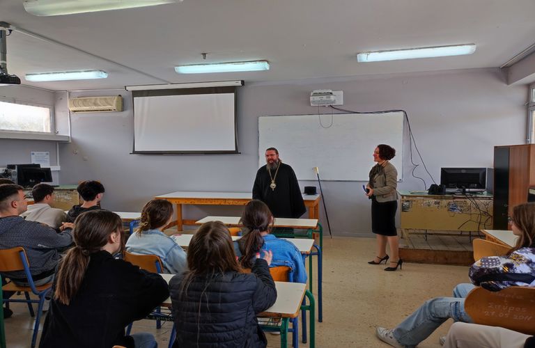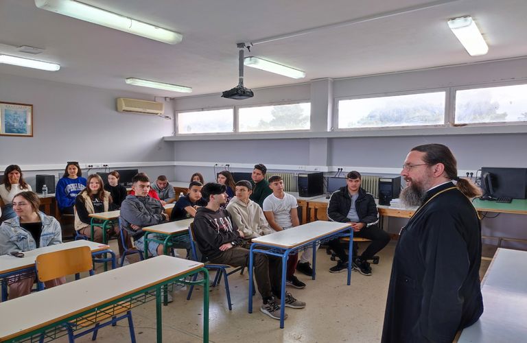 Ο Σεβασμιότατος εξέφρασε την χαρά του και ευχαρίστησε για την πρόσκληση να βρεθεί στη σχολική αίθουσα και να απαντήσει σε οποιαδήποτε ερώτηση επιθυμούν να του θέσουν οι μαθητές. Για περισσότερο από μιάμιση ώρα συνομίλησε μαζί τους, απάντησε στις ερωτήσεις τους και η συζήτηση επεκτάθηκε και σε πολλά άλλα θεολογικά, εκκλησιαστικά, κοινωνικά και νεανικά θέματα.