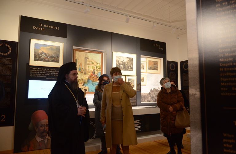 Ο Σεβασμιώτατος δήλωσε εντυπωσιασμένος από την προσπάθεια αυτή και συνεχάρη θερμά την κ. Φλώρου και τους συνεργάτες της για την έμπνευση και τη δημιουργία του πολιτιστικού αυτού πολυχώρου, που αποτελεί σημείο αναφοράς για το Μεσολόγγι.