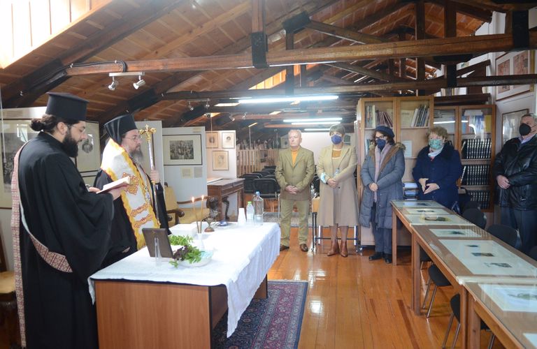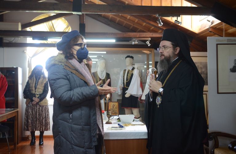 Ανταποκρινόμενος στην πρόσκληση της Προέδρου κ. Ροδάνθης Φλώρου τέλεσε την Ακολουθία του Αγιασμού για την έναρξη της νέας χρονιάς και ξεναγήθηκε στο χώρο των εκδηλώσεων, στην πλούσια βιβλιοθήκη και στο εντυπωσιακό μουσείο, όπου θαύμασε τα εκθέματα και την άψογη οργάνωση του χώρου.