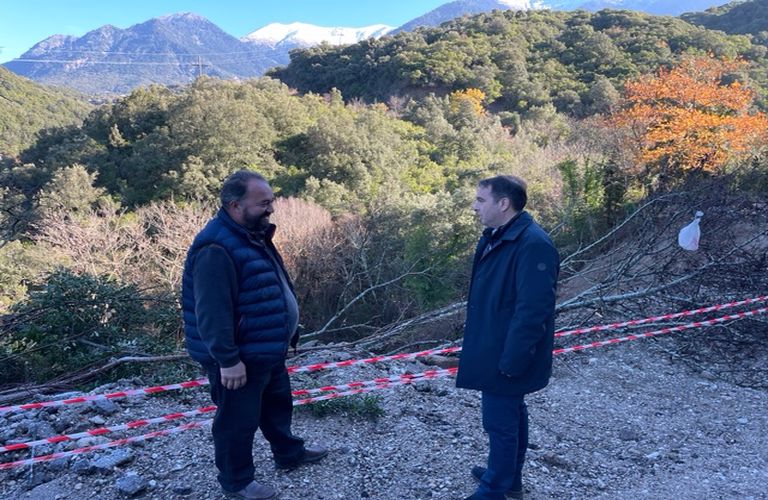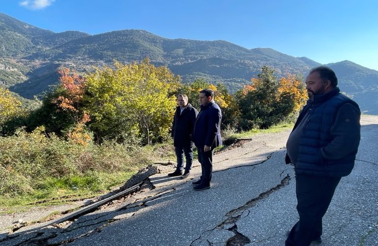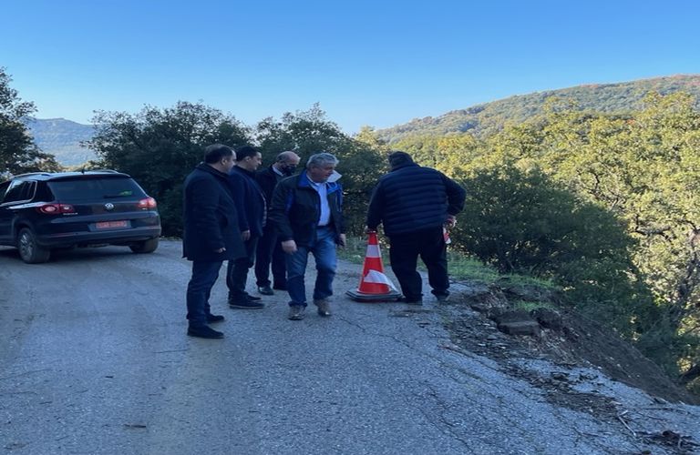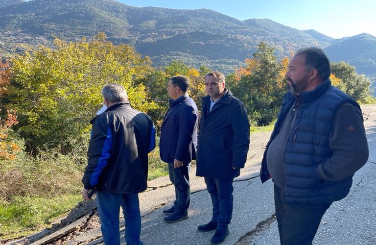 Με τους Προέδρους των τοπικών κοινοτήτων και με κατοίκους επισκέφθηκε όλα τα σημεία όπου πραγματοποιήθηκαν κατολισθήσεις, καθιζήσεις και καταστροφές.