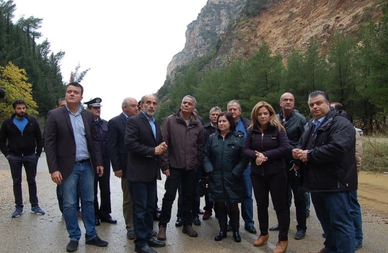 Νωρίτερα, ο Υπουργός Εσωτερικών συνοδευόμενος από το Δήμαρχο ιερής Πόλης Μεσολογγίου Νίκο Καραπάνο, αντιδημάρχους και τοπικούς εκπροσώπους, επισκέφθηκε διαδοχικά την τοπική κοινότητα Χρυσοβεργίου, το σημείο της εθνικής οδού Μεσολογγίου – Αγρινίου όπου έχει διακοπεί η κυκλοφορία οχημάτων λόγω κατάπτωσης του οδοστρώματος και τέλος την τοπική κοινότητα Φραγκουλέικων η οποία επίσης αντιμετωπίζει σοβαρότατα προβλήματα από κατολισθήσεις.