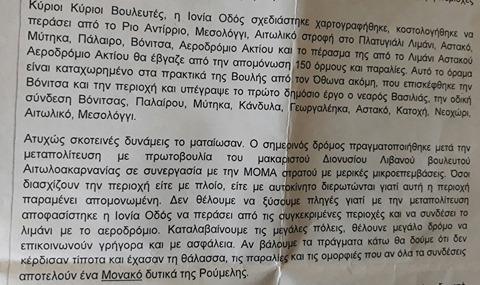 Ο παλαιοημερολογίτης Μητροπολίτης Ακτίου-Βόνιτσας και Στερεάς Ελλάδας Ανατόλιος Ψυχογιός, απέστειλε επιστολή προς τους βουλευτές και όλους τους αρμόδιους, με την οποία ζητά ένα σύγχρονο οδικό δίκτυο για την Ακαρνανία (Αστακός-Βόνιτσα) προκειμένου να βγει η περιοχή από την απομόνωση και να καταφέρει να αναπτυχθεί.