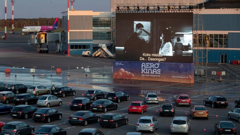 Οι πιο εντυπωσιακές εικόνες όμως έρχονται από το αεροδρόμιου το Βίλνιους – πρωτεύουσα της Εσθονίας. Το αεροδρόμιο της πόλης έχει μετατραπεί σε μια απέραντη κινηματογραφική αίθουσα αξιοποιώντας έτσι δημιουργικά τον αδρανή χώρο αφού οι πτήσεις λόγω της παγκόσμιας πανδημίας έχουν απαγορευτεί. Η πρώτη ταινία που προβλήθηκε ήταν η πολυβραβευμένη Νοτιοκορεάτικη «Τα παράσιτα». \